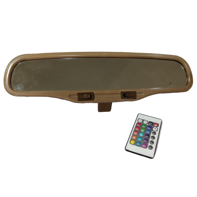 آینه شیشه ساده و جنس بدنه پلاستیک درجه یک ABS است و دارای دو چراغ مطالعه برای راننده و سرنشین با کلید خاموش و روشن میباشد پایه کوتاه است و قابل نصب تمامی خودرو هاست . قابلیت تغییر رنگ چراغ با کنترل همراه به رنگ های دلخواه شما به رنگ های :قرمز ,آبی ,بنفش و ... با نگه داشتن چند ثانیه از دکمه رنگ مورد نظر به حالت چشمک زن روشن میشود. رنگ محصول کرمی میباشد.